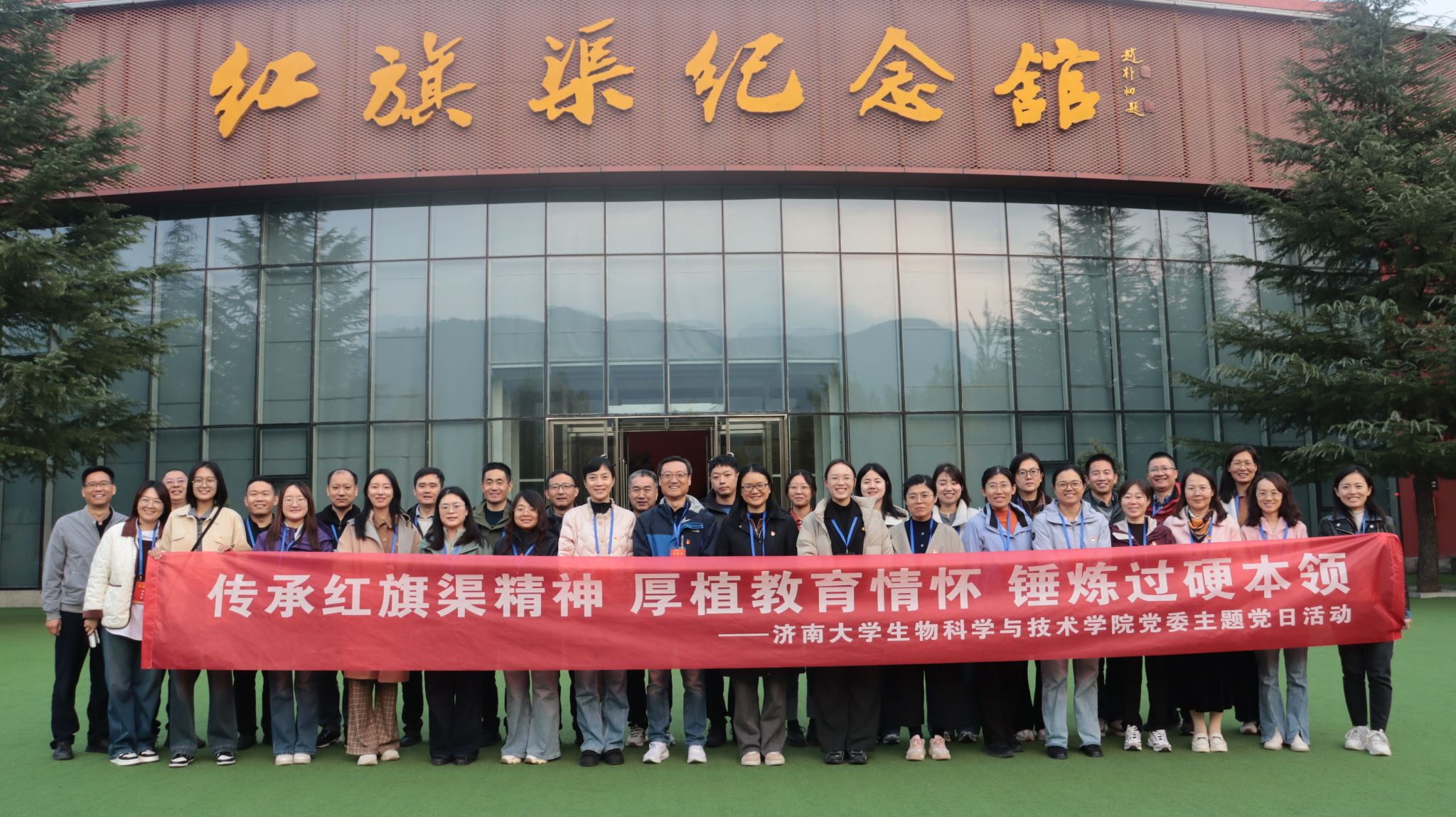 为深入学习贯彻习近平新时代中国特色社会主义思想,传承红色基因,锤炼党性修养,10月25日,冰球突破mg正规官网党委组织教职工党员,由学院党委书记史国普、院长秦晓春带队,赴红旗渠开展“赓续红旗渠血脉,砥砺奋进担使命”党性学习教育活动。