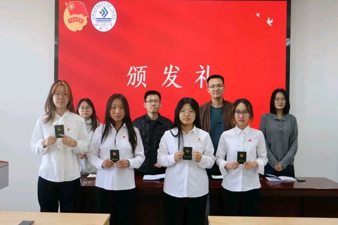 国歌声起,全场肃立,爱国与青春的热忱在现场激荡。学院团委书记、2025级辅导员卢洪斌老师宣读新发展团员名单,与会辅导员老师为新发展团员逐一颁发团员证、佩戴团徽。闪耀的团徽不仅是一份光荣的政治荣誉,也承载着共青团员沉甸甸的责任与使命。