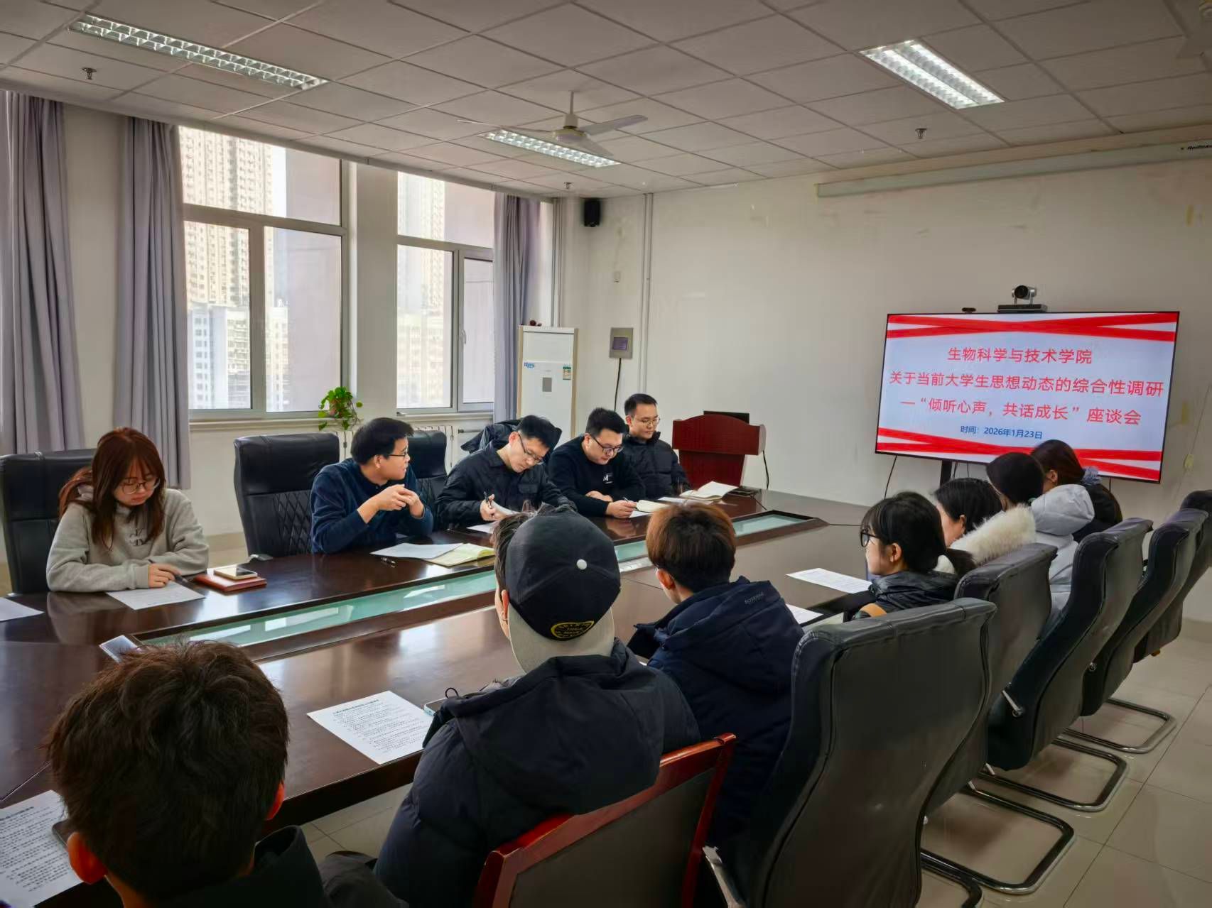 为做好寒假前学生教育关怀与思想引导工作,1月23日,冰球突破mg正规官网成功召开“温暖回家路”暨学生思想动态调研座谈会。学院党委书记史国普,学院党委副书记、副院长杜艳,全体辅导员及学生代表参加会议。会议由杜艳主持。