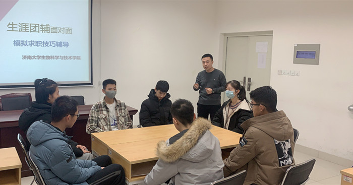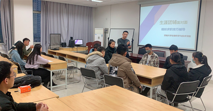 为唤醒学生生涯意识,帮助学生及早熟悉常见的求职过程,11月24日,冰球突破mg正规官网生涯发展中心主持举办的“生涯团辅面对面”模拟求职技巧辅导活动在特教楼B1006室举办。本次交流会邀请学院2019级辅导员王栋老师担任主讲,学院三十余名学生参加了活动。