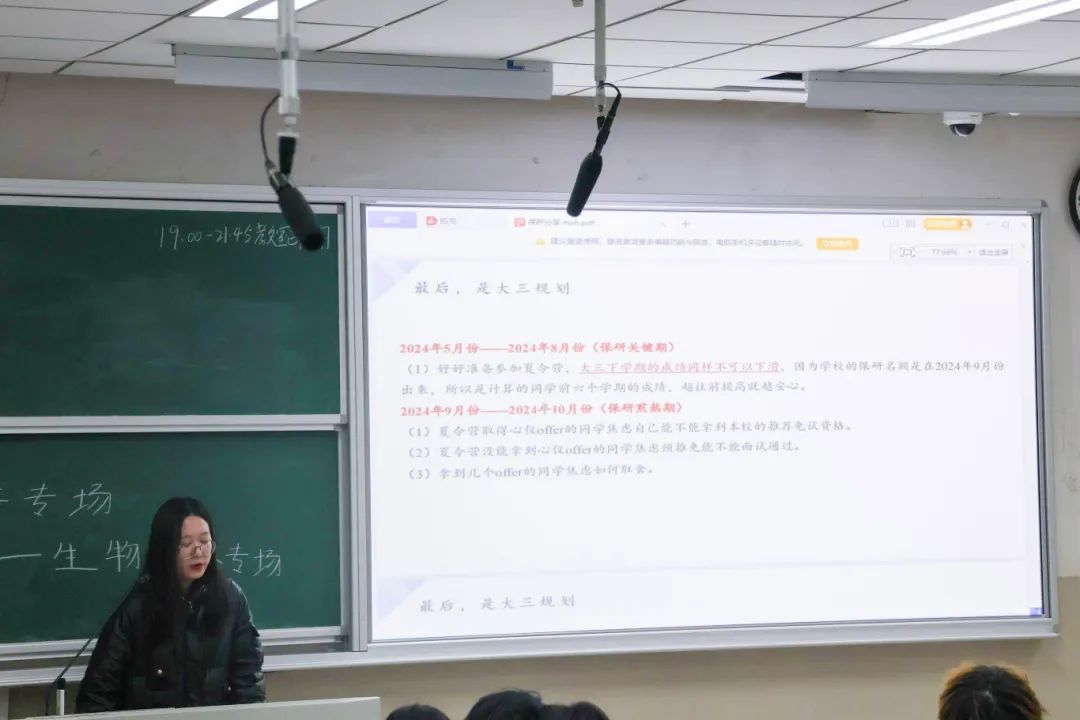 攀山至顶,行海达岸,披星戴月,终得其辉。保研是众多学子心向往之的,但保研人的背后是夜以继日的努力。披荆斩棘走过的路,终将会繁花遍地。希望同学们通过保研经验交流会学有所获,奋力拼搏,在2025届保研中勇创佳绩。