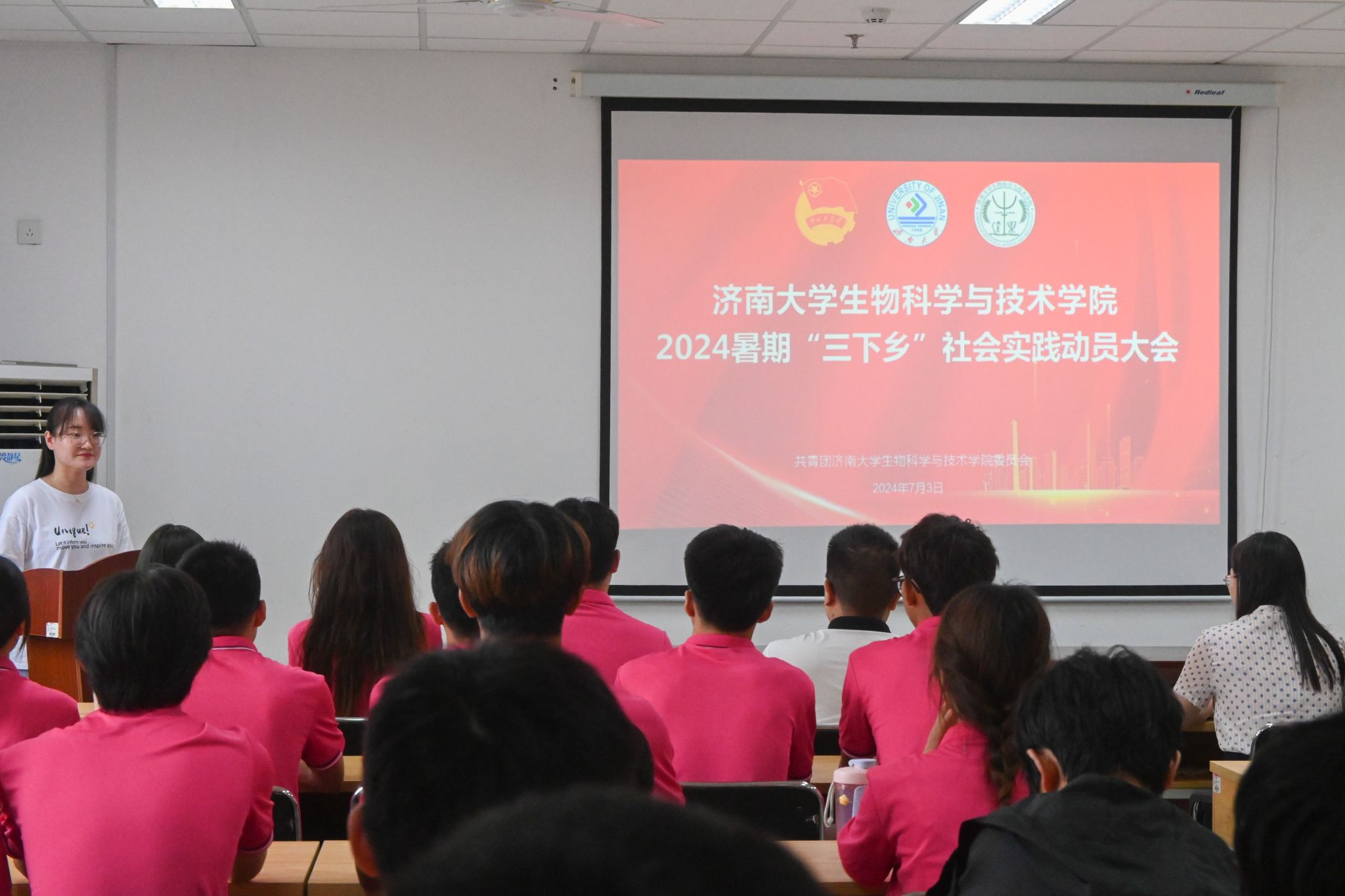 为深入学习宣传贯彻习近平新时代中国特色社会主义思想和党的二十大精神,激发广大青年学生的社会责任感和社会服务热情,引导青年学生在实践中受教育、长才干、作贡献,7月2日,冰球突破mg正规官网举办2024年暑期“三下乡”社会实践动员大会。大会由学院团委书记吴钰玮主持,学院党委副书记、副院长武芳,辅导员李立衡、任子安,各实践团队队长出席会议。