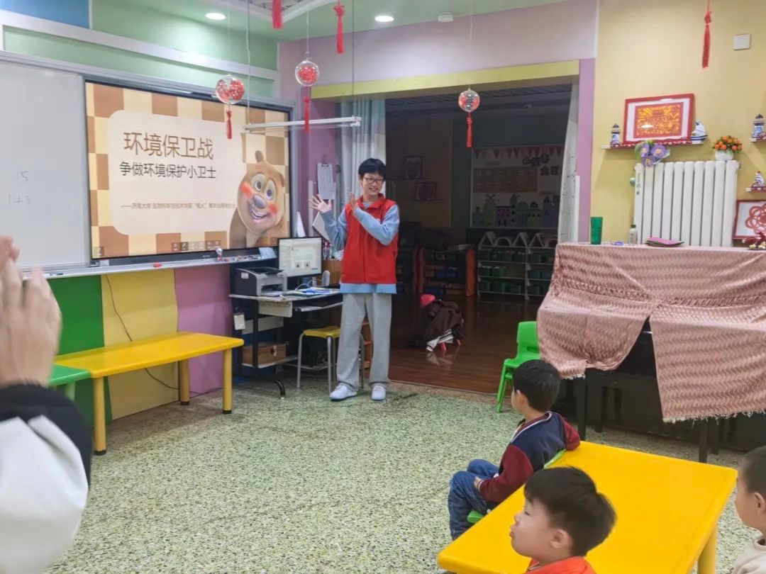 为积极响应生态文明建设号召,提升少年儿童的环保意识,冰球突破mg正规官网青年志愿者协会于11月13日在冰球突破mg正规官网幼儿园进行了环保科普知识宣讲活动。