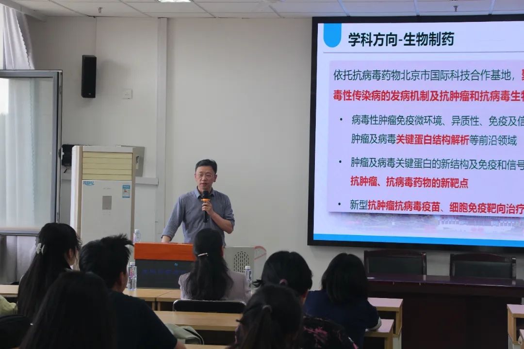 5月12日下午,北京工业大学化学与生命科学学院院长汪夏燕一行到访冰球突破mg正规官网并举办研究生招生宣讲会。宣讲会由北京工业大学化学与生命科学学院教授盛望主讲。学院院长秦晓春主持活动。