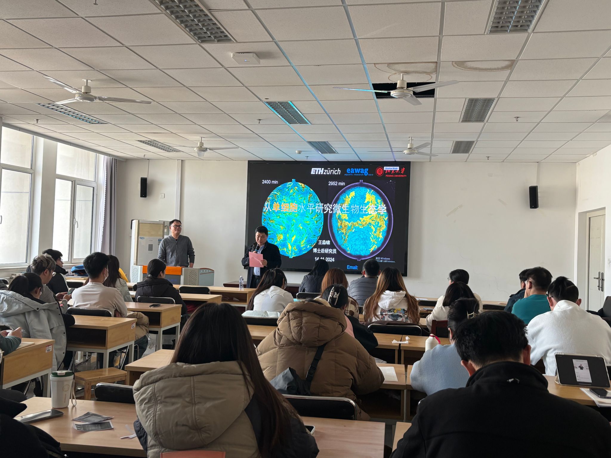 12月11日,瑞士苏黎世联邦理工学院博士后研究员王淼啸应邀来冰球突破mg正规官网开展学术交流,并以“从单细胞水平研究微生物生态学”为题作学术报告。学院班子成员,教师代表,研究生、本科生代表参加活动。报告会由学院副院长李强主持。
