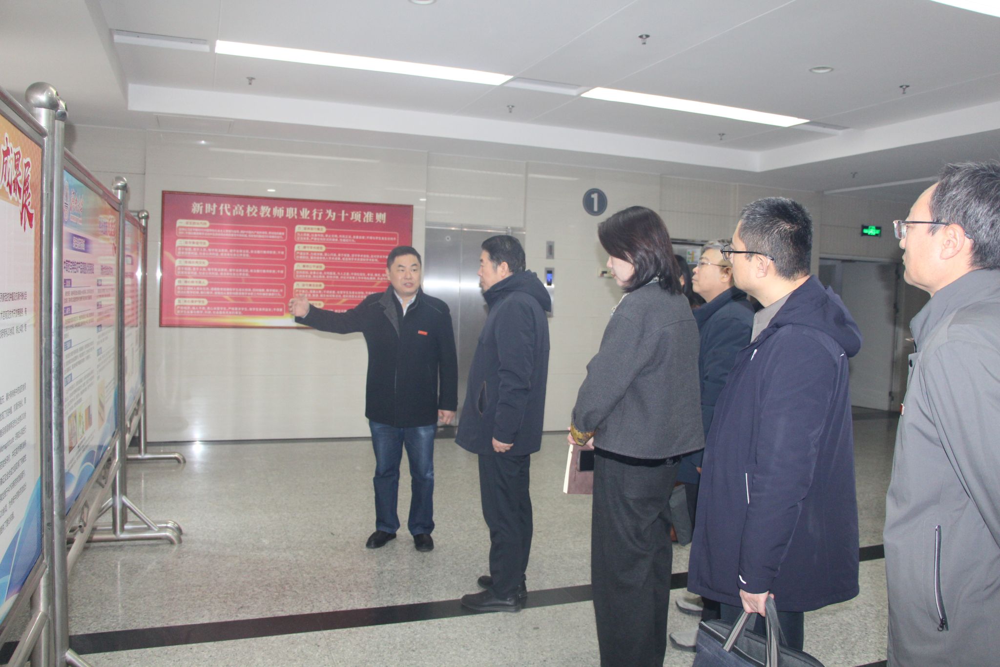 调研开始前,续铁书记一行在学院一楼展厅参观了学院科研成果展板。李强副院长结合展板内容汇报了学院在绿色制药领域取得的科研创新成果。续铁书记认真听取介绍,不时询问细节,对学院取得的成果表示肯定。