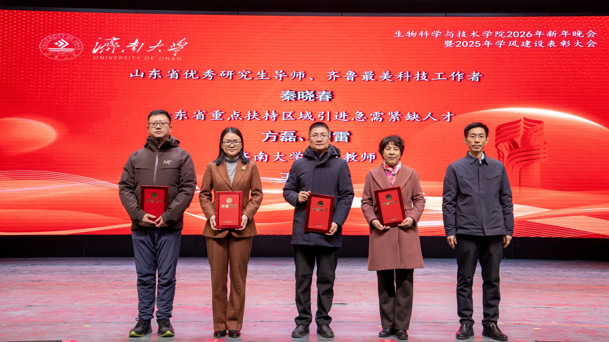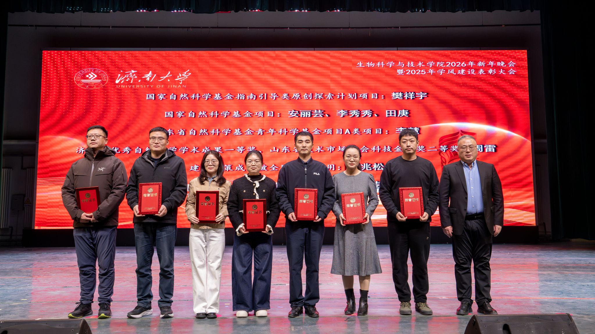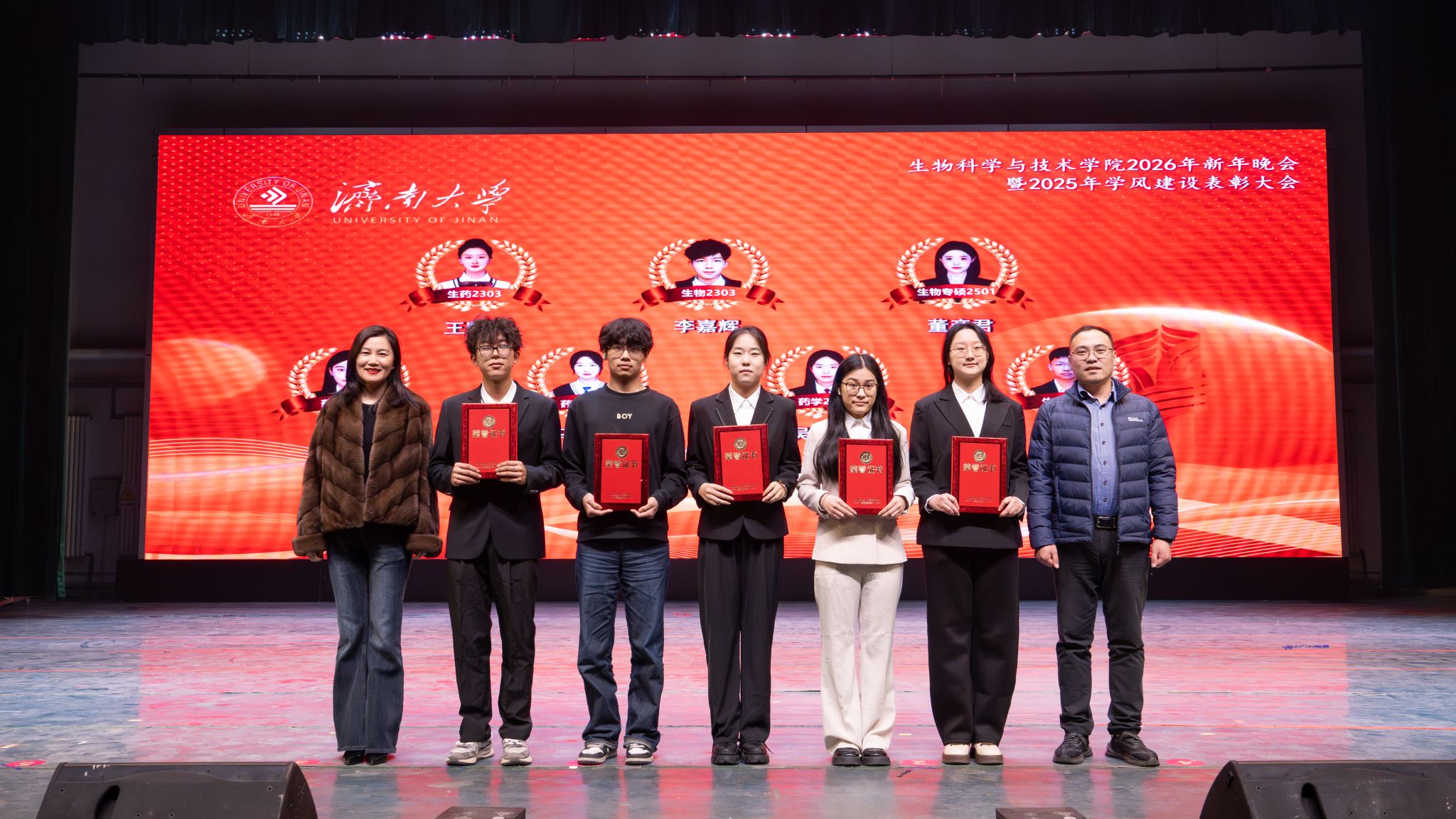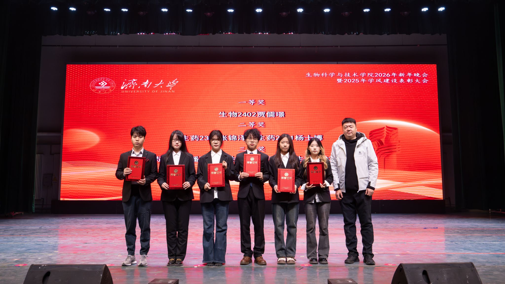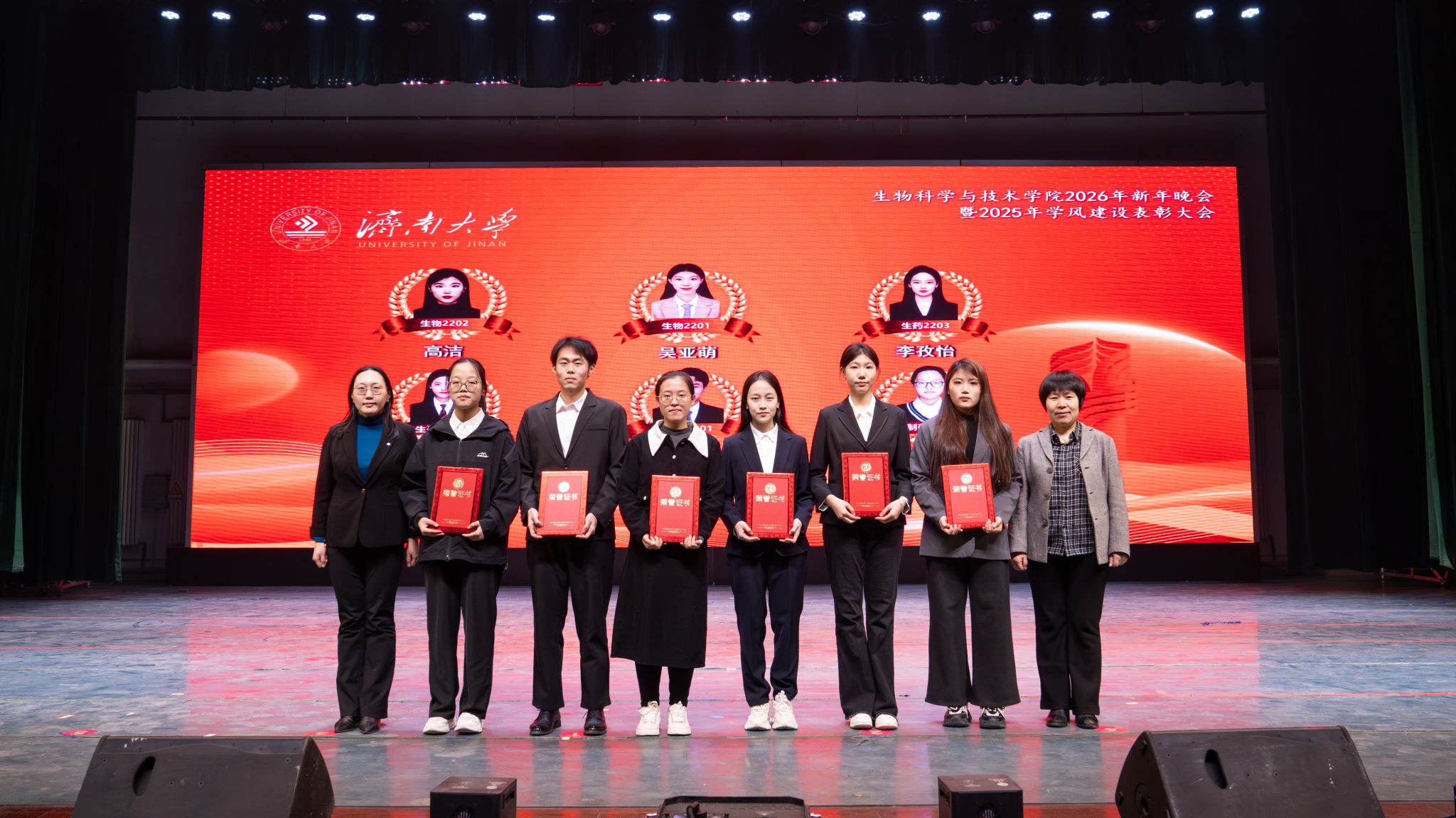 弦歌不辍,薪火相传。本次新年晚会暨学风建设表彰大会既是一场精彩纷呈的视听盛宴,更是一次涤荡心灵的精神洗礼、凝心聚力的生动实践,生动展现了冰球突破mg正规官网深耕立德树人、坚持开拓创新的丰硕成果,更彰显出全院师生团结奋进、追求卓越的精神风貌。站在2026年的崭新起点,全体生科人必将以更加饱满的热情、更加昂扬的斗志、更加务实的作风,策马扬鞭、勇毅前行,共同擘画学院发展的宏伟蓝图,为学校高质量发展凝聚共识、汇聚合力,为强国建设、民族复兴贡献生科智慧与力量。