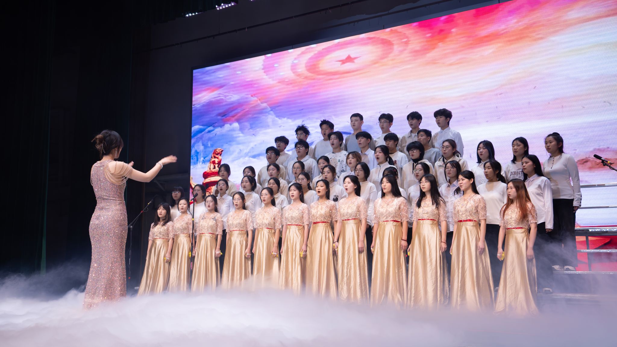 深情激昂的师生合诵《在冬天的麦苗上,看到中国的春天》(改编)展现了站在“十五五”新起点,生科人昂扬向上的精神风貌;创意十足的情景剧《错位时空》以跨越百年的对话,彰显了青年的赤子之心与责任担当;活力四射的舞蹈串烧、深情动人的歌曲演唱、异域风情的古巴舞蹈、幽默犀利的小品《“周日”去哪儿了》、童趣与流行碰撞的《最炫喜羊羊》、寓意深刻的影子戏《觉醒青年》、歌唱沂蒙精神的合唱《爱永在》等节目轮番上演,充分体现了生科学子多才多艺、昂扬向上的精神风貌。最后,晚会在全体演员与观众共同唱响的《相亲相爱》的温暖歌声中落下帷幕。