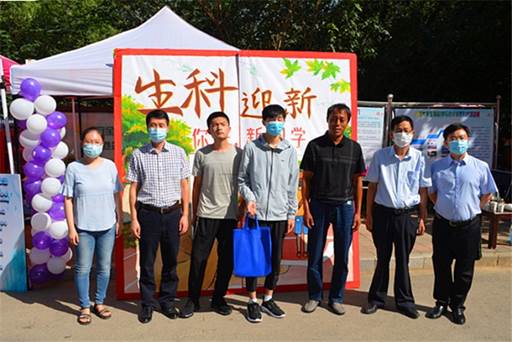 学生会组织全体迎新工作志愿者,为新生精心设计了报到流程,为家长设置了温馨的休息区。手绘的拍照留念展板前,众多新生及家长驻足合影。每一位新生收获了一套学院专属定制的学院文化手提袋。迎新志愿者统一着装、热情洋溢,在引导处、新生报到处和宿舍楼,帮新生搬运行李,为新生答疑解惑。身着“生科粉”的志愿者在热闹的校园里构成了一道靓丽风景线。