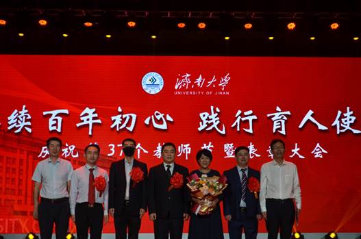 在2018-2020年期间教学科研工作受到学校奖励,并作为代表上台领奖的老师:孙翔玲,2019-2020年度济南优秀教育工作者;李强, 2020年度挑战杯中国大学生创业计划竞赛银奖指导教师;王元秀,冰球突破mg正规官网教学名师及2018年度“创青春”全国大学生创业大赛银奖指导教师;江成世,2019年度山东省优秀研究生指导教师;樊祥宇,2019年度“挑战杯”中国大学生课外学术科技作品竞赛二等奖指导教师。
