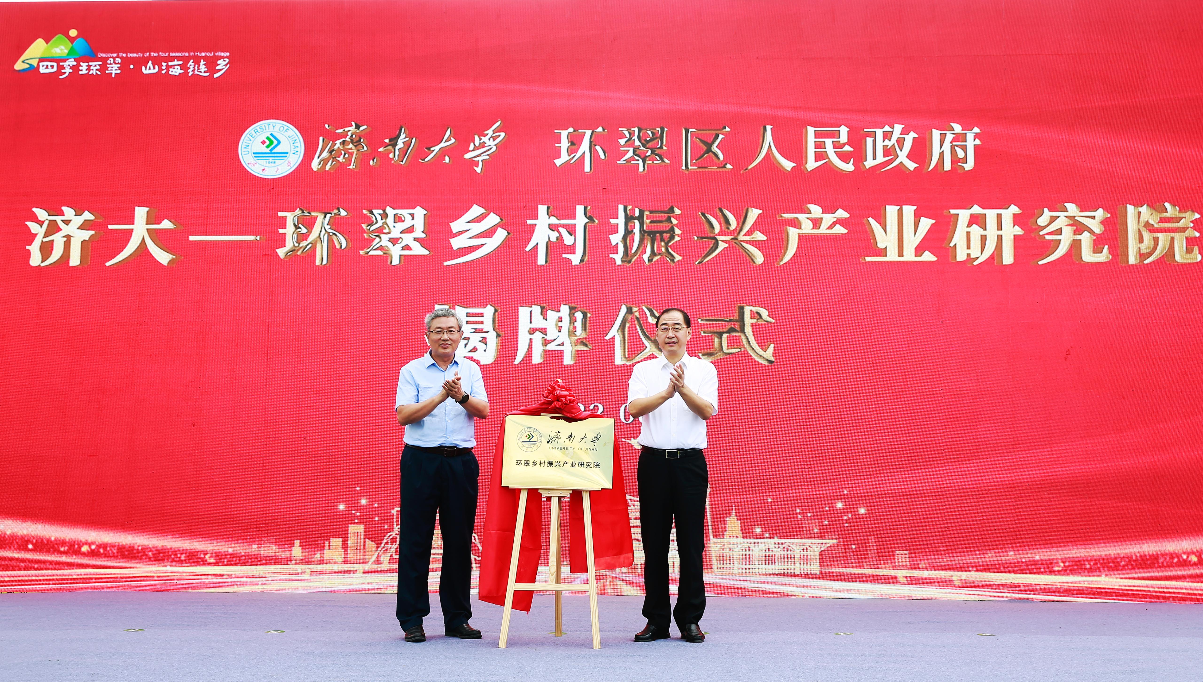 8月17日,冰球突破mg正规官网与威海市环翠区人民政府共同成立“冰球突破mg正规官网-环翠乡村振兴产业研究院”揭牌仪式举行。冰球突破mg正规官网党委常委、副校长张勇,威海市委常委、副市长张宏璞出席仪式,环翠区区委书记张刚,区委副书记、区长于晓东,区委常委、区委办主任郑磊,副区长王文萍,山东颐养健康集团农业(集团)有限公司等相关企业、学校科技处、科技成果转化办公室副主任张志国,冰球突破mg正规官网党委书记孙翔玲,党委副书记、副院长武芳,办公室主任王军参加活动。仪式由环翠区区委副书记于晓光主持。