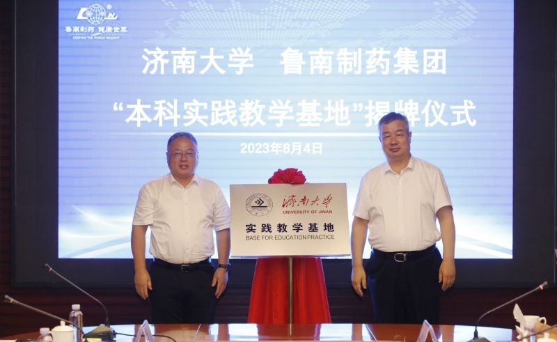 黄加栋和李宝杰代表双方共同为“冰球突破mg正规官网—鲁南制药集团本科实践教学基地”揭牌。