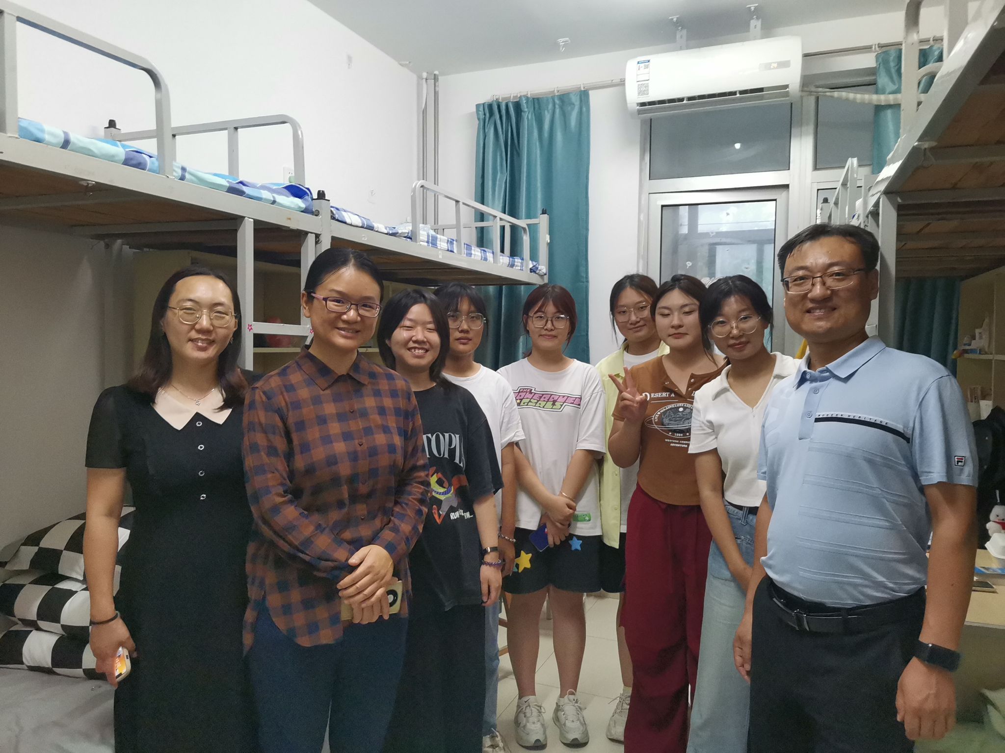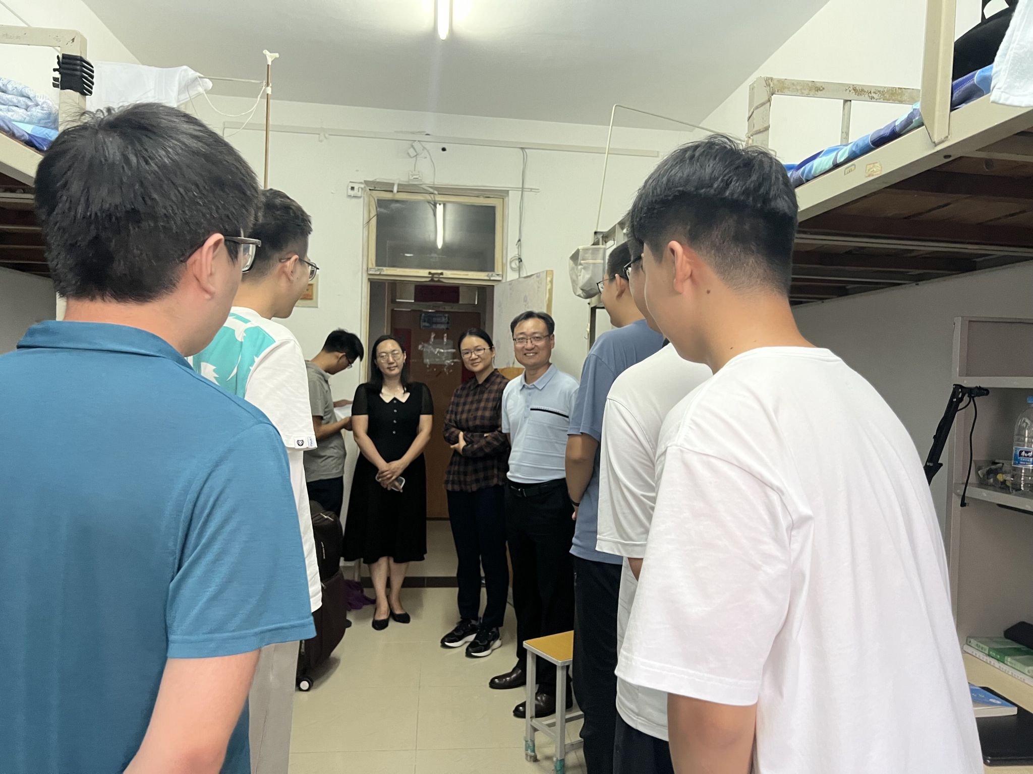 9月6日,冰球突破mg正规官网迎来了400余名2023级新同学。为深入了解新生情况,帮助学生尽快适应新环境,当天下午,学院党委书记史国普,院长秦晓春,党委副书记、副院长武芳,学办主任阮斌,辅导员李立衡逐一走访宿舍,为学生送去亲切的问候与热切的关爱。