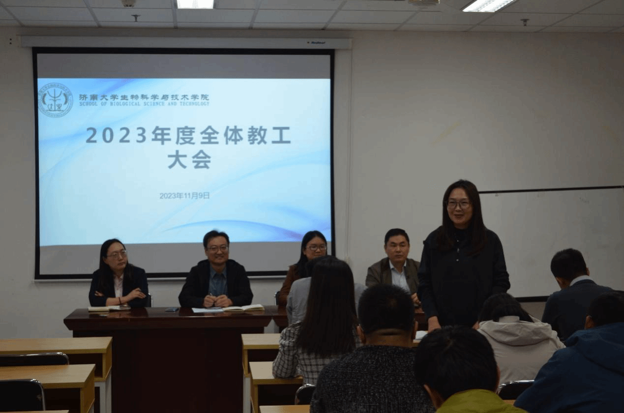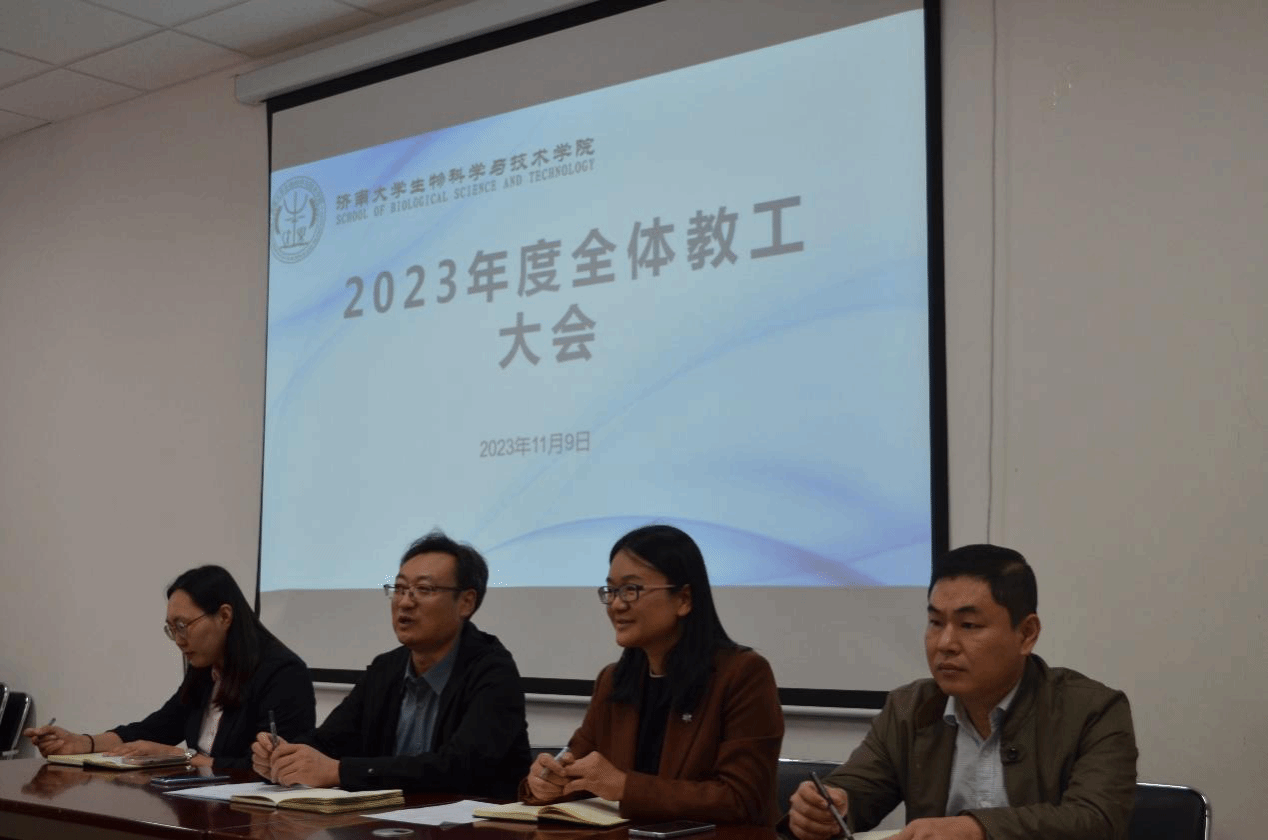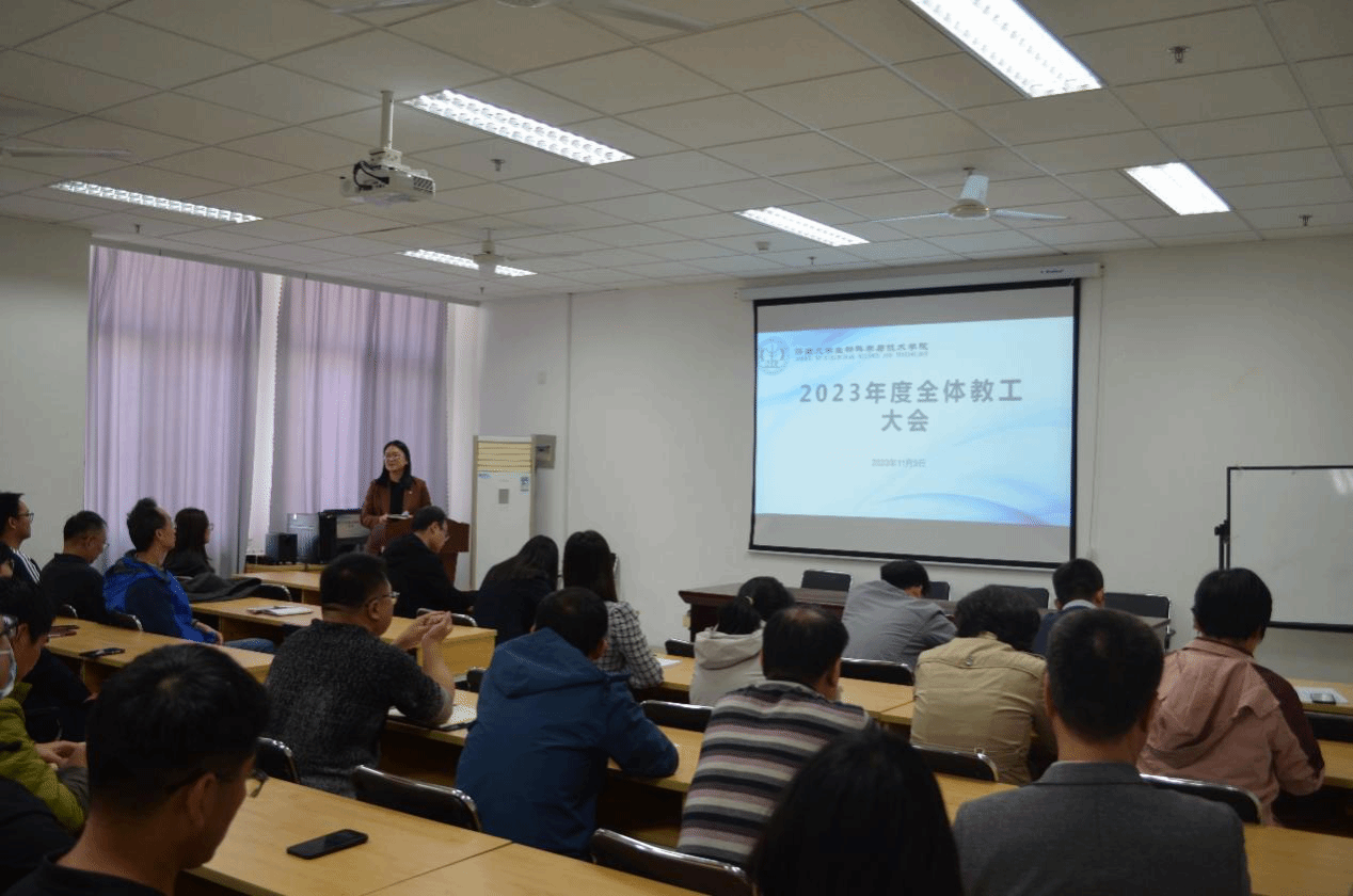 2023年11月9日下午,冰球突破mg正规官网在特教楼B1010教室召开全院教职工大会,学院党委书记史国普,院长秦晓春,党委副书记、副院长武芳,副院长李强以及全院教职工参加。本次会议由史国普主持。