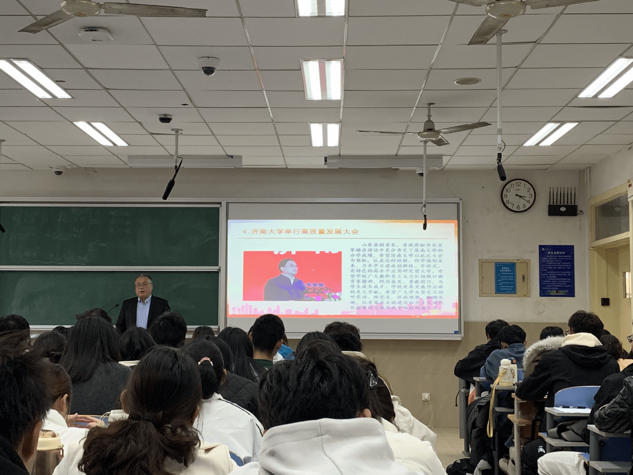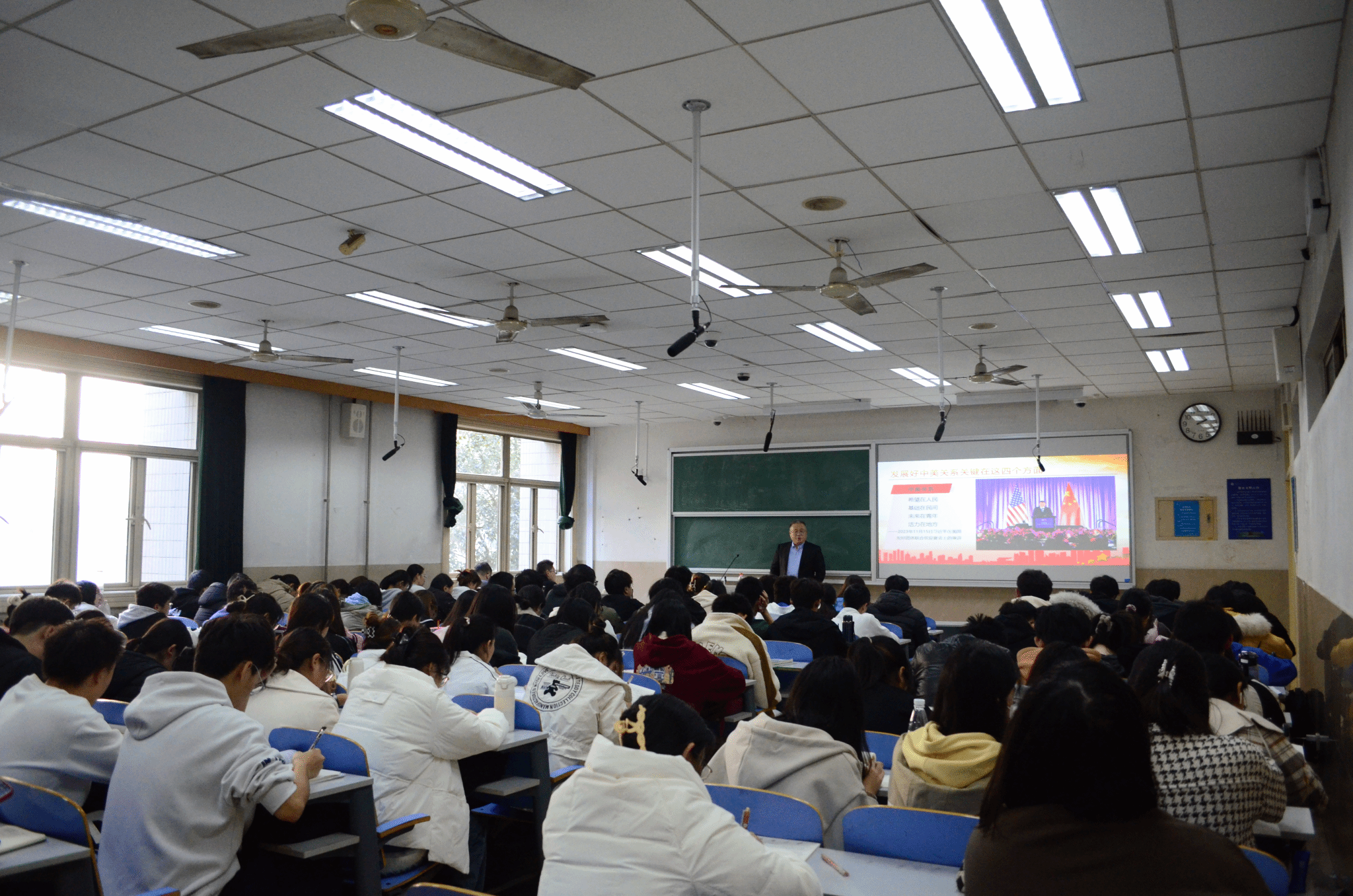 为深入学习宣传贯彻习近平总书记近期重要讲话精神,深入开展主题教育,更好地落实立德树人根本任务,11月23日,冰球突破mg正规官网党委常委、副校长黄加栋为冰球突破mg正规官网生物2201班、生药2301班、生药2302班学生讲授专题《形式与政策》课,学院党政领导班子成员与学生们一同参加了本次课程。