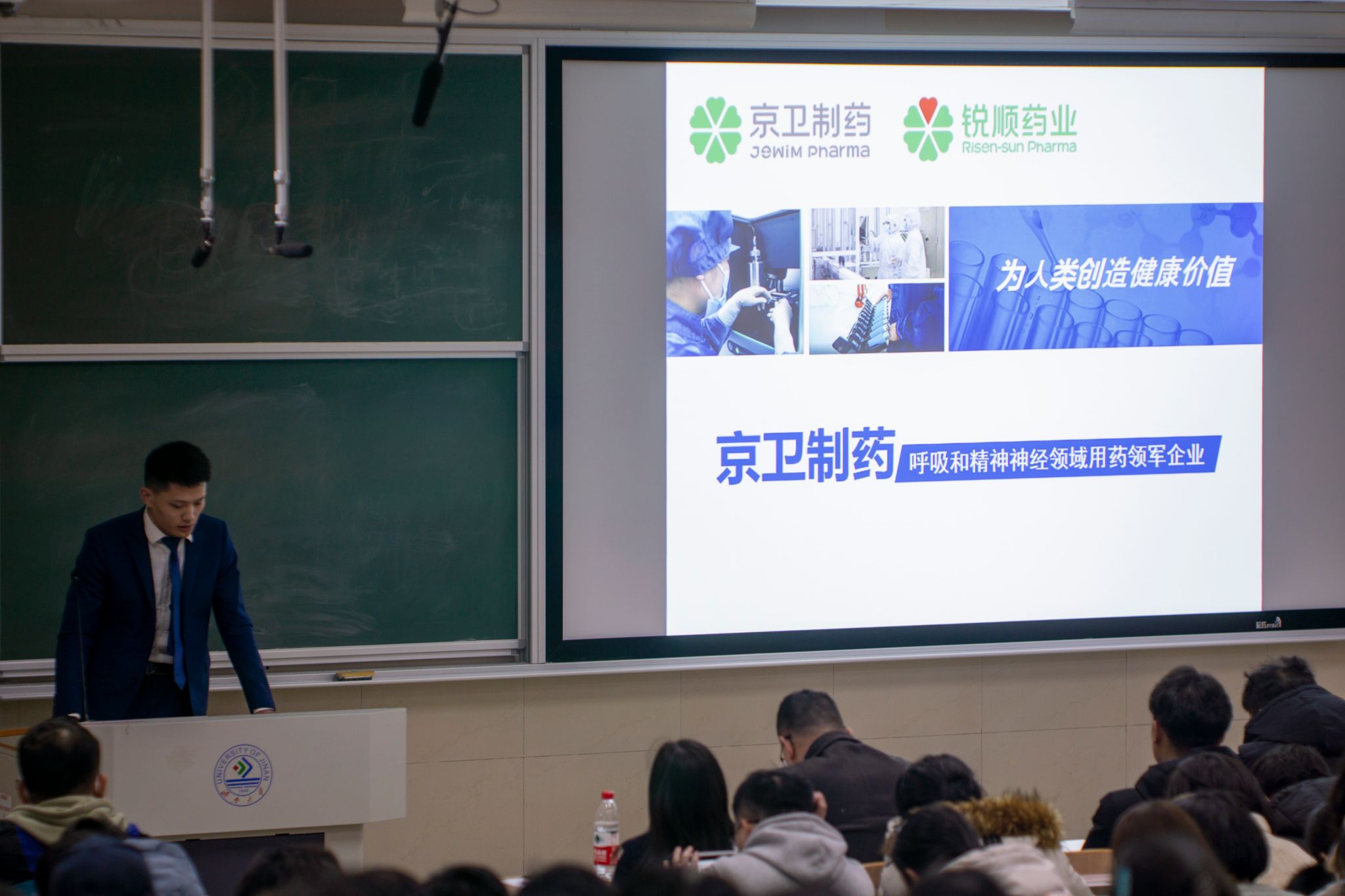 会议第二阶段为企业招聘宣讲。学院邀请鲁南制药集团股份有限公司、山东百诺医药股份有限公司、山东京卫制药有限公司、山东佰萃生特殊医学用途配方食品有限公司相关负责人进行招聘宣讲,有效增进了毕业生对业内不同领域岗位的认识,帮助毕业生精准定位。宣讲会后,毕业生主动与用人单位沟通交流,达成了初步就业意向。