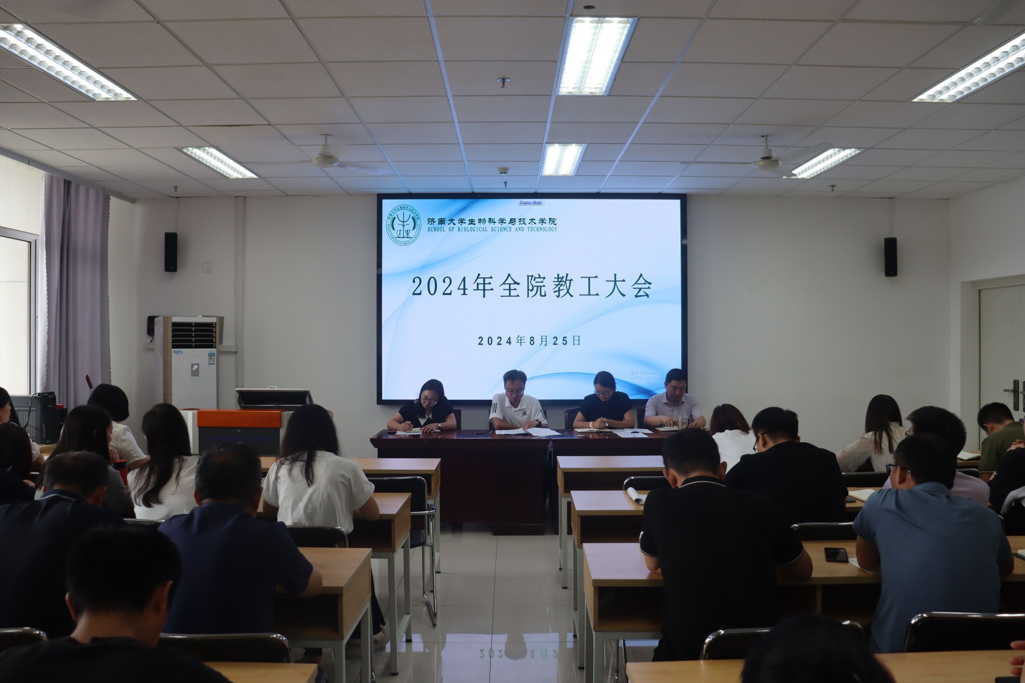 8月25日,冰球突破mg正规官网召开全体教职工大会,传达学习学校四届五次全委会扩大会议精神,总结上半年工作情况,并部署新学期重点任务。学院领导班子成员、全体教职工参加会议,会议由学院党委书记史国普主持。