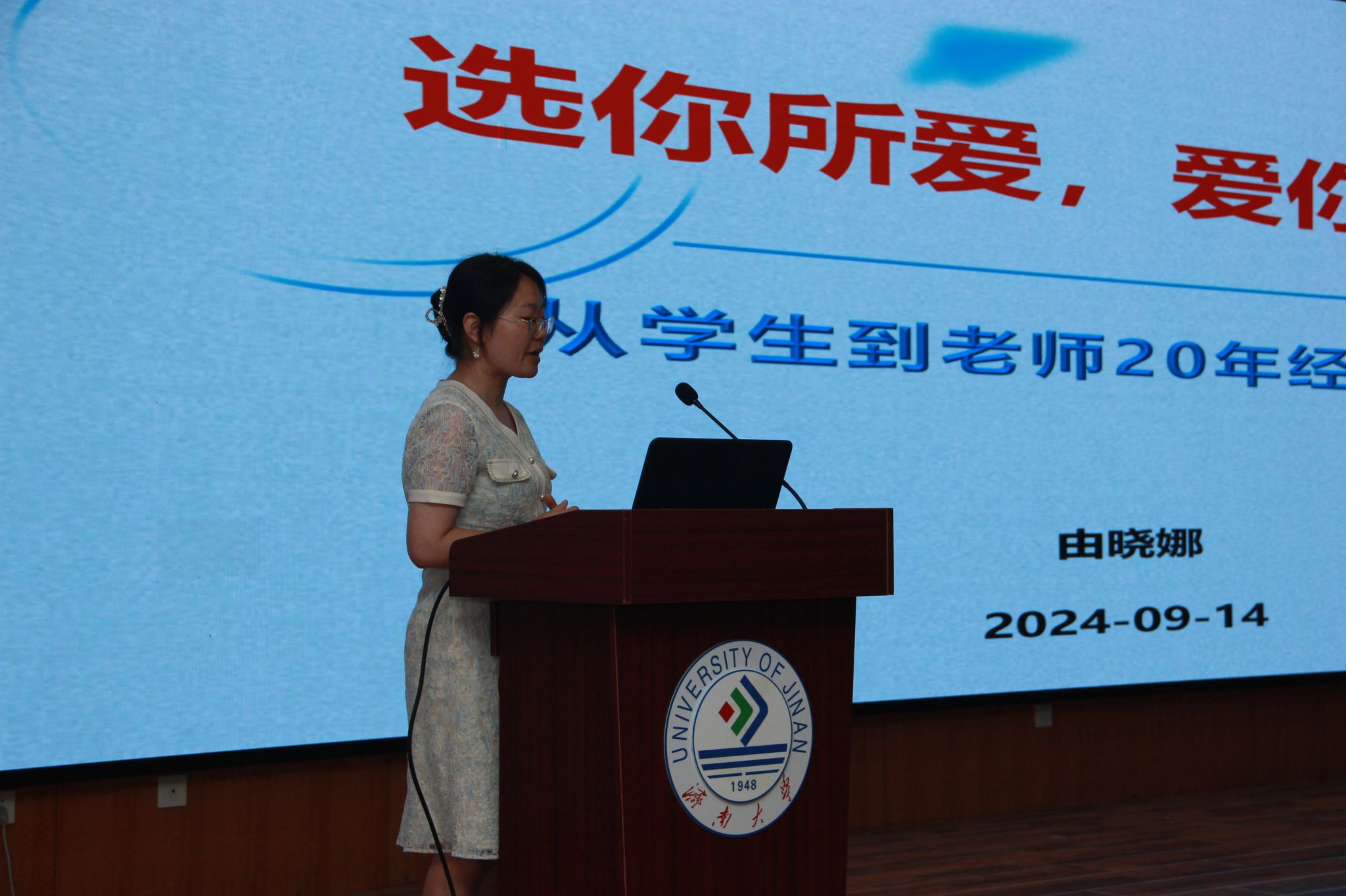 校友代表,山东大学药学院研究员、博士生导师由晓娜深情回顾了在冰球突破mg正规官网的求学经历,分享了从学生到老师二十年的经验体会,并表示希望同学们在步入大学校门后能够调整心态、战胜迷茫、把握机遇,在新的起跑线跑出属于自己的幸福。
