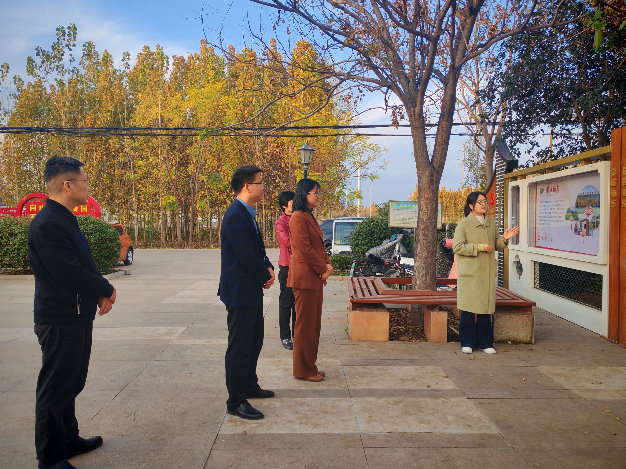 在南张街道安阳新村,学院一行在村党支部书记助理、学院校友、2023年度山东省拔尖选调生张佳馨的介绍下,了解安阳新村的发展变迁、产业结构等方面情况。秦晓春询问学院毕业生在基层工作内容、面临挑战以及个人成长发展相关情况,鼓励其发挥济大学子的优良品质与专业素养,为乡村振兴贡献更多力量。