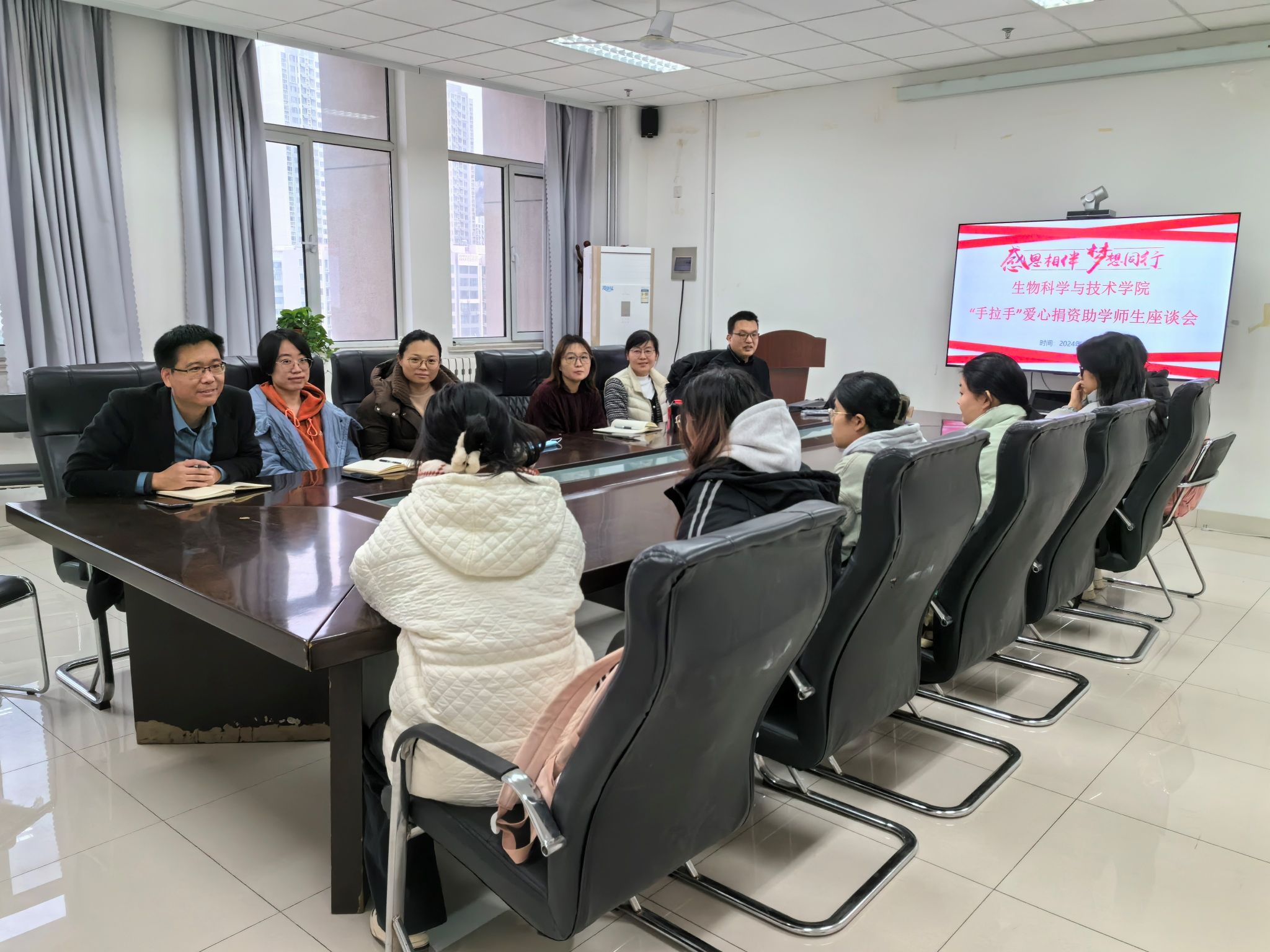座谈会上,杨倩介绍本年度“手拉手”爱心捐资助学活动的发起、捐资以及评选相关情况。希望学生怀揣感恩之心,奋发图强、努力学习,以优异的成绩回报老师。与会学生依次发言,介绍在校期间学习生活情况以及遇到的疑惑和问题。与会教师针对同学们提出的问题予以一一解答,并结合学院概况和专业特点,对学生的专业学习给出建议,并从人与环境关系的角度,引导学生以“阳光、向上、践行”的心态,快速实现由被动学习向自主学习的转变。现场交流热烈,学生纷纷表示切实感受到了学院的关怀。