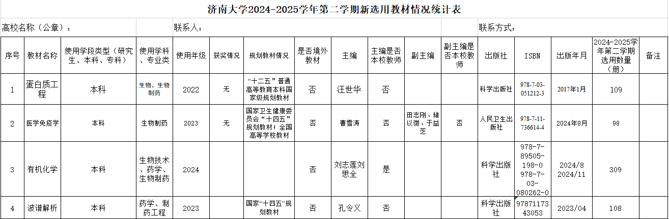 根据《普通高等学校教材管理办法》(教材〔2019〕3号)和《冰球突破mg正规官网教材管理办法》(济大校字〔2021〕86号)文件精神,经学院教研室、系及学院教材工作领导小组审核,相关教材符合国家教材委员会及省教育厅相关文件要求,同意选用。